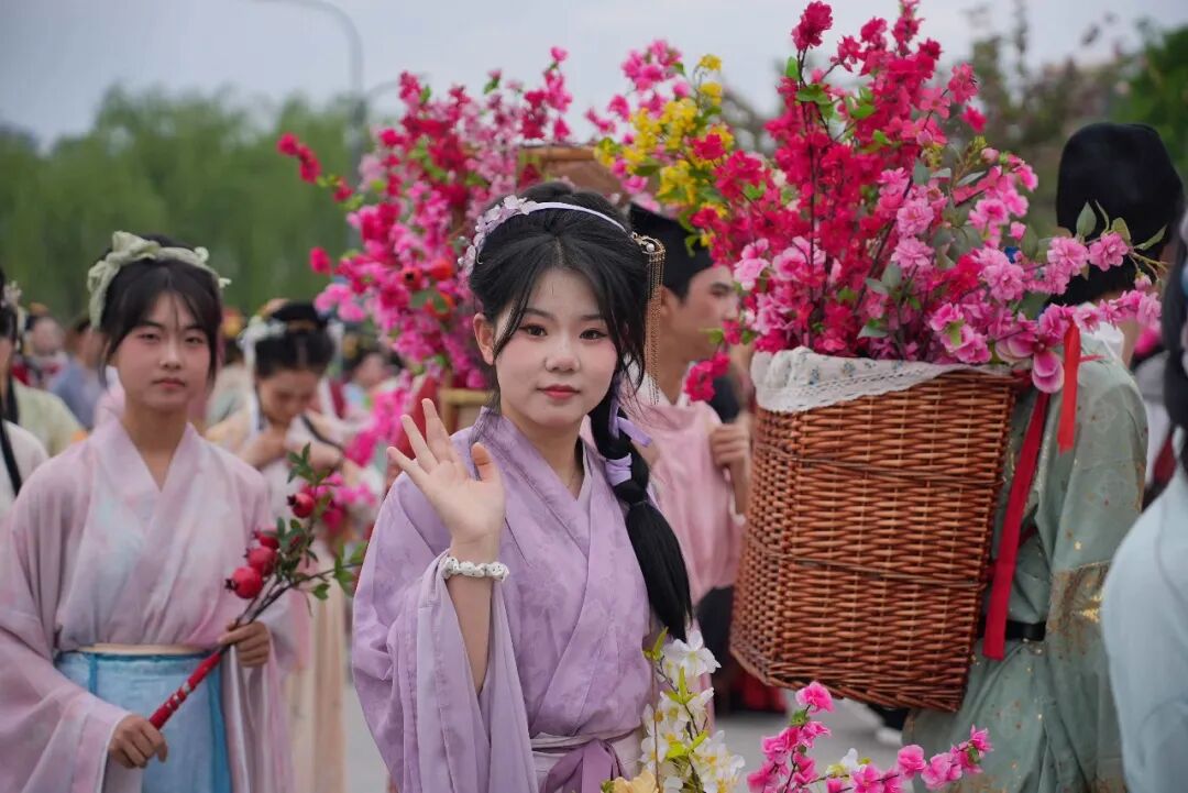 古韵咸阳 十里花朝 红烛志愿者协会 春染渭水,花满古街。4月12日,“古韵咸阳 十里花朝”咸阳市第二届花朝文化节在咸阳老街盛大开幕。红烛志愿者们以双重身份助力盛会,既是花神、诗人、卖花女等传统角色的演绎者,也是现场秩序的守护者,用青春活力与责任担当,为这场春日文化盛宴增添温暖力量。
