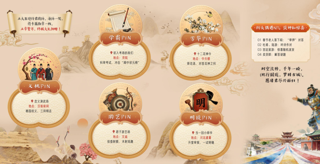 💛在古城内五大小剧场与NPC共同完成沉浸式互动游戏,即可获得小剧场专属“PIN证”!