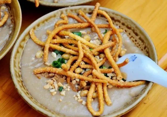 阆中的油茶可不是普通的茶!米糊打底,撒上金黄酥脆的馓子、花生碎、葱花,再淋一勺灵魂花椒油和辣椒油。搅拌均匀,每一口都是丰富的层次感。