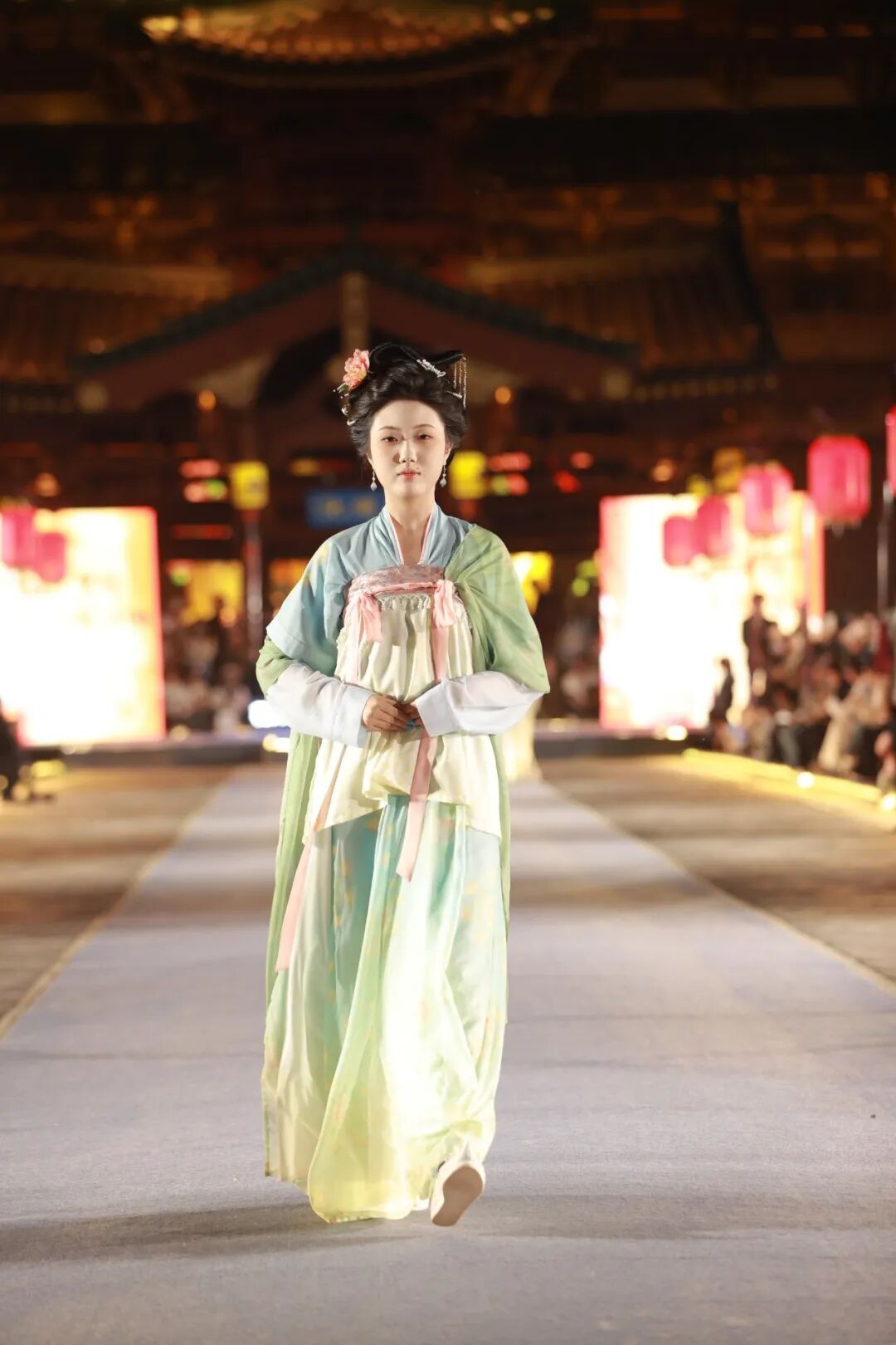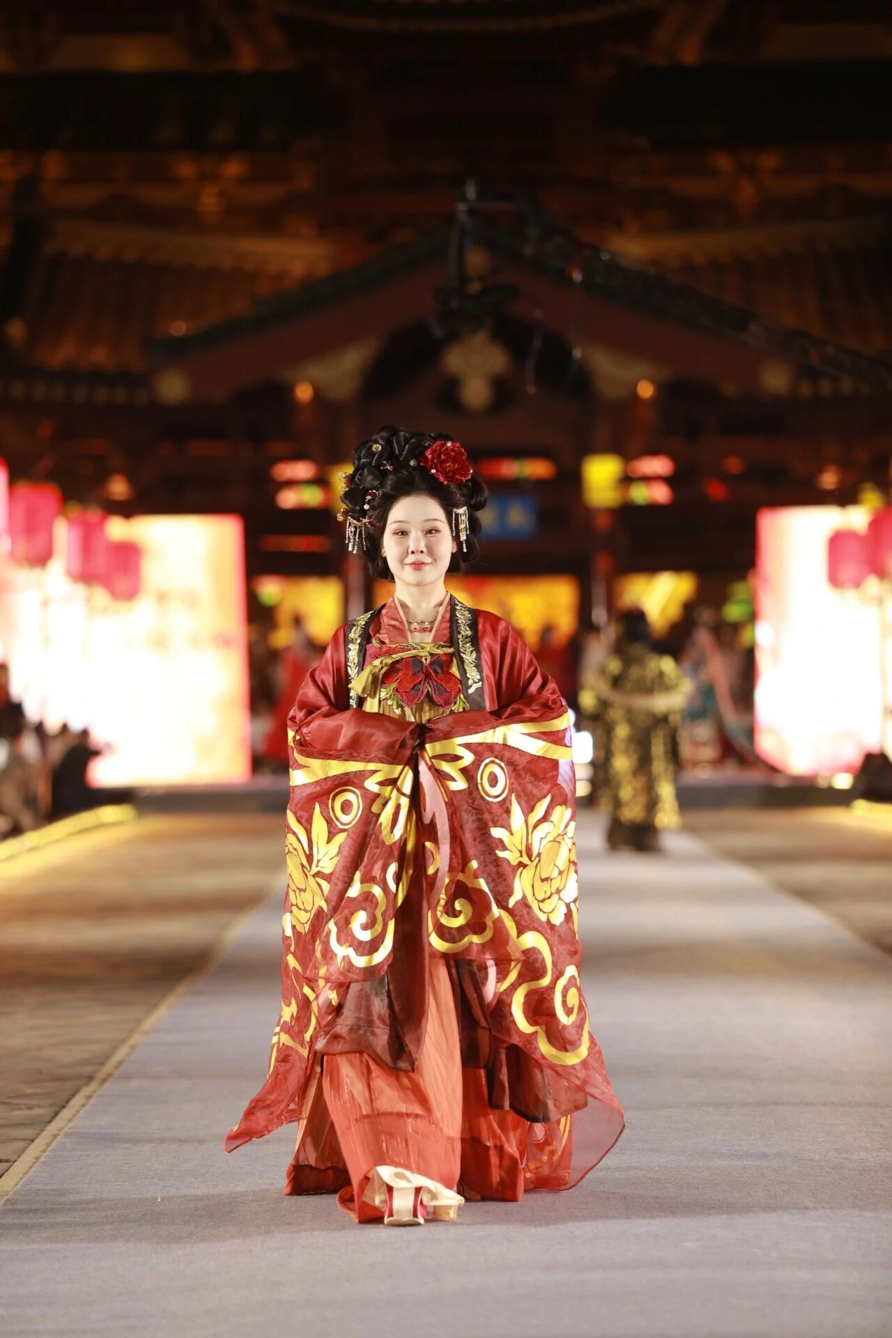 本次盛典以"汉服+牡丹"为核心,依托九洲池盛唐皇家御苑的实景舞台,让传统服饰美学与皇家古韵完美交融。来自全国的13支优秀女性团队依次登台,涵盖企业家、科技工作者、艺术家、退休职工等不同群体,她们以走秀、舞韵、旗袍演绎汉唐风范,用身姿传递东方之美。现场颁奖与一镜到底团队秀将氛围推向高潮,尽展新时代女性的风采与担当。