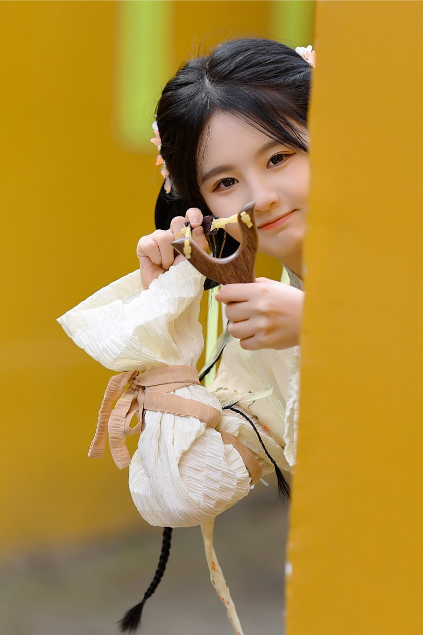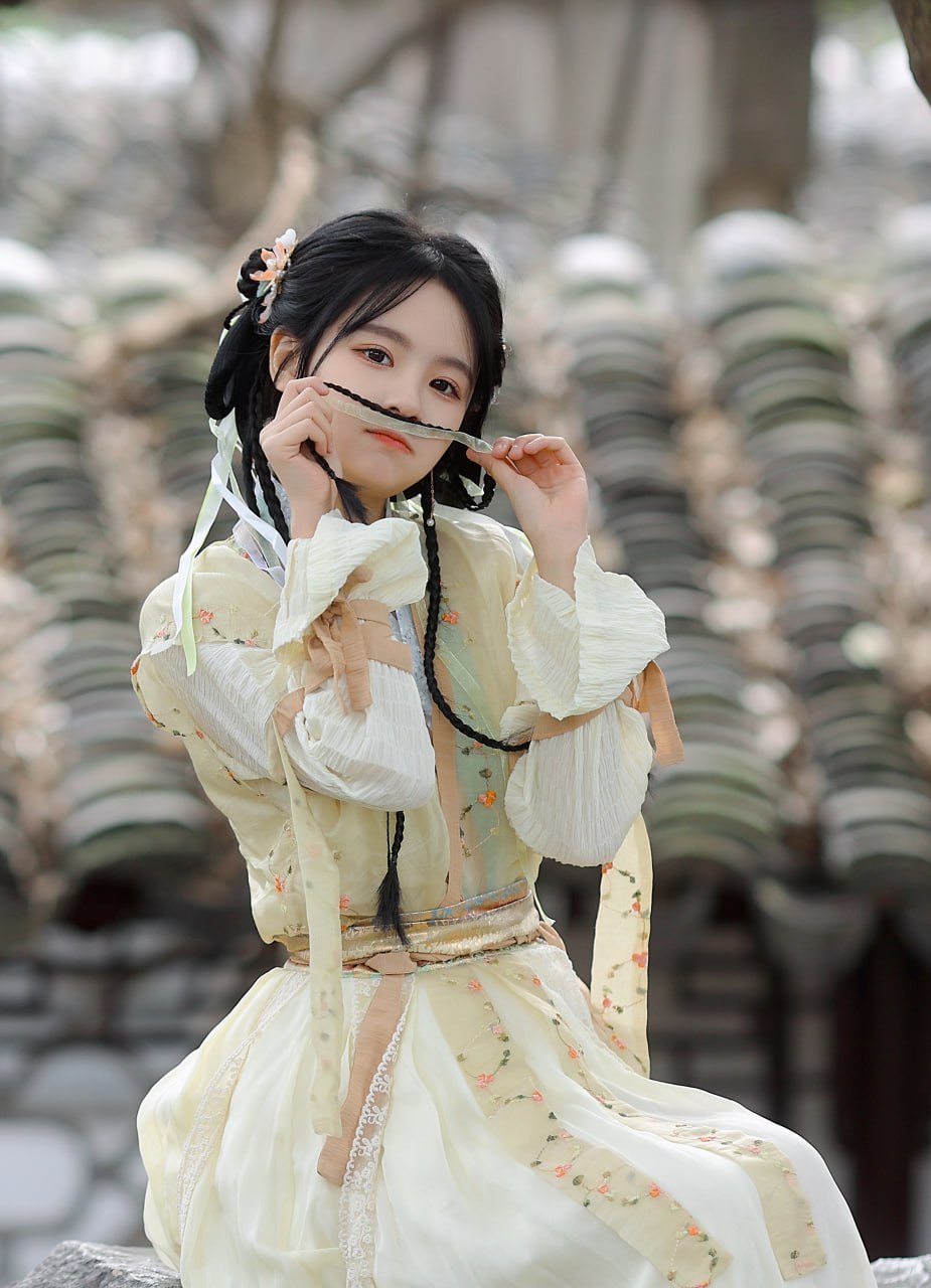 瓦当如旧,岁月留痕。轻捻丝带,眉间藏着少女心事。